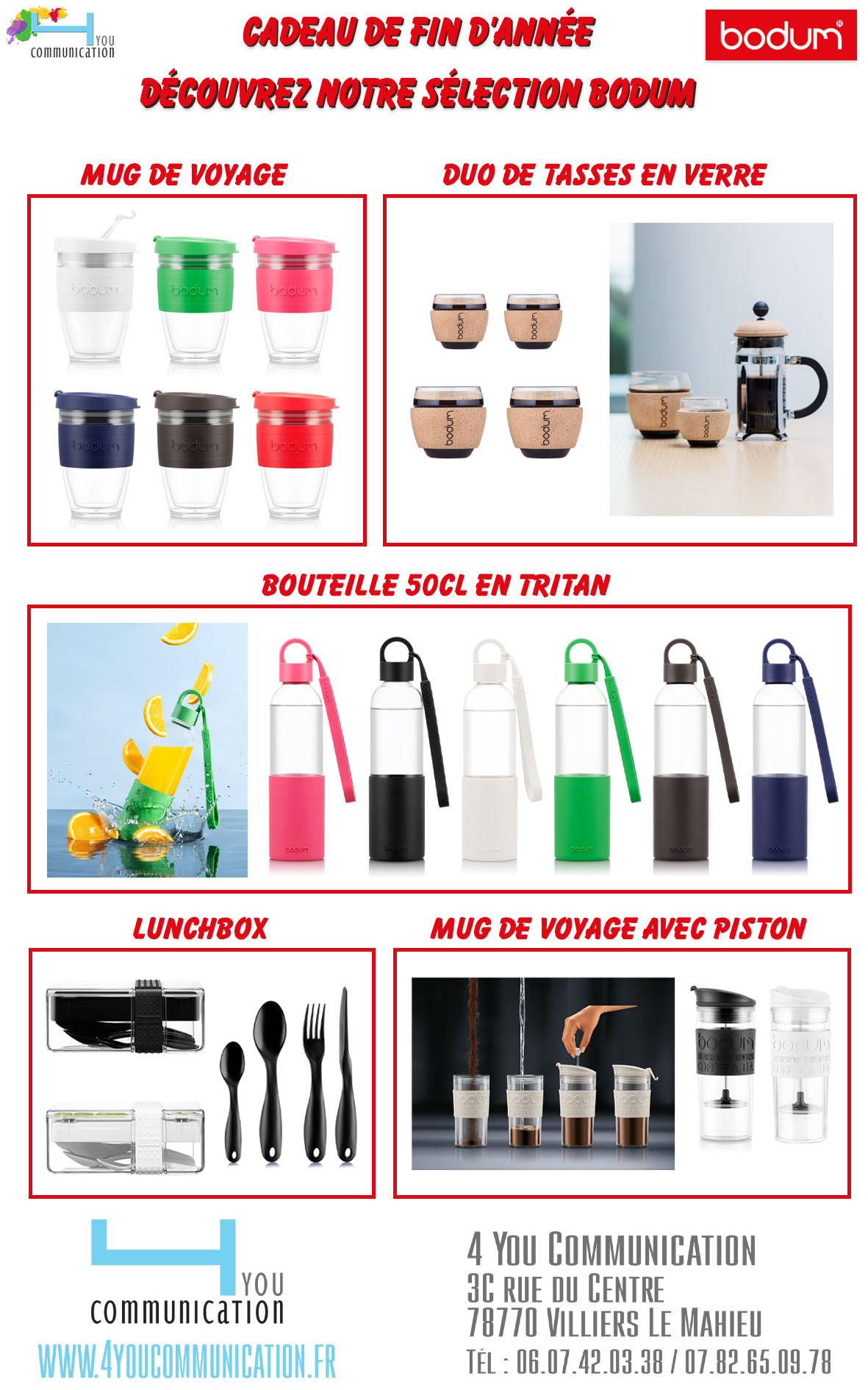 16Nov16 novembre 2022 Sélection Bodum pour vos cadeaux de fin d’année 4you2022-11-16T18:05:03+00:00 Besoin d’un renseignement, d’un devis ? Contactez-nous par mail info@4youcommunication.fr Partager cette publication Facebook Gazouillement LinkedIn Google + Email